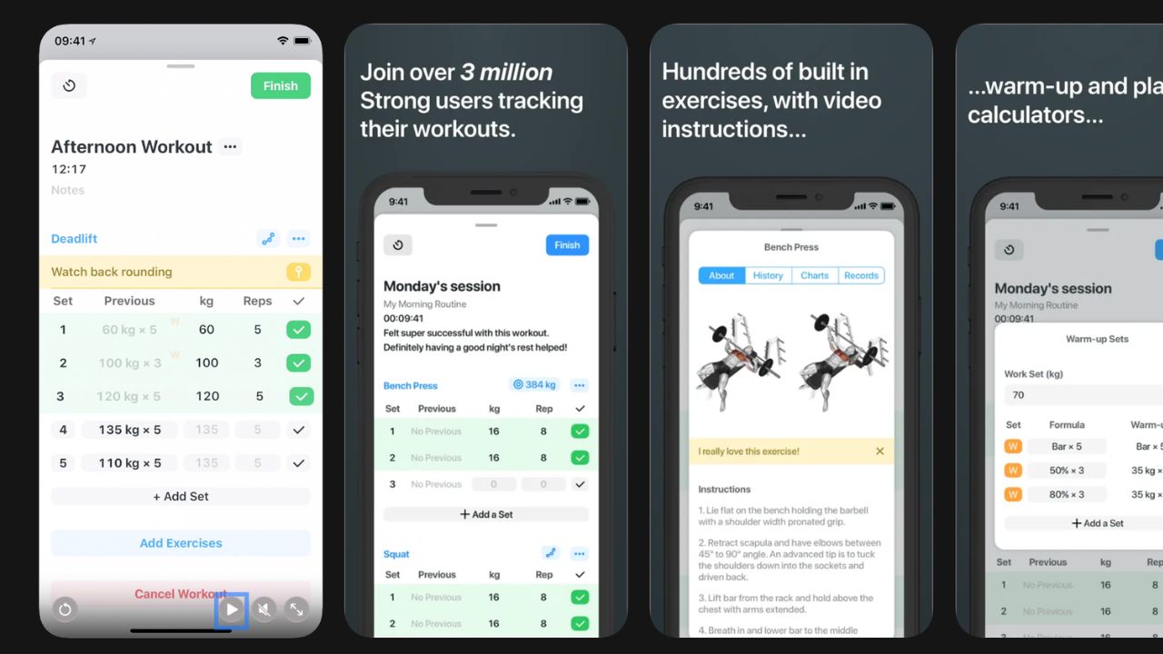 - Best workout tracker: Strong - clean logging interface, great Apple Watch support.