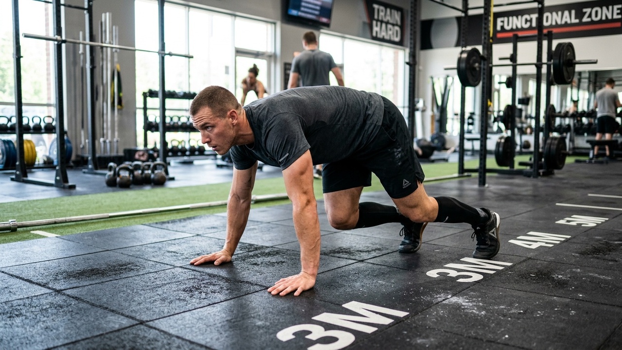 Bear crawls also challenge your cardiovascular system aggressively. Thirty seconds of controlled bear crawling will elevate your heart rate and light up muscles you didn't know you had. They're an excellent warm-up, finisher, or conditioning tool.
